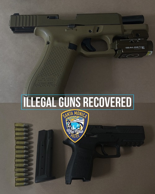 Santa Monica police officers recovered two firearms during separate traffic stops conducted recently, resulting in arrests on multiple weapons-related charges, authorities said.