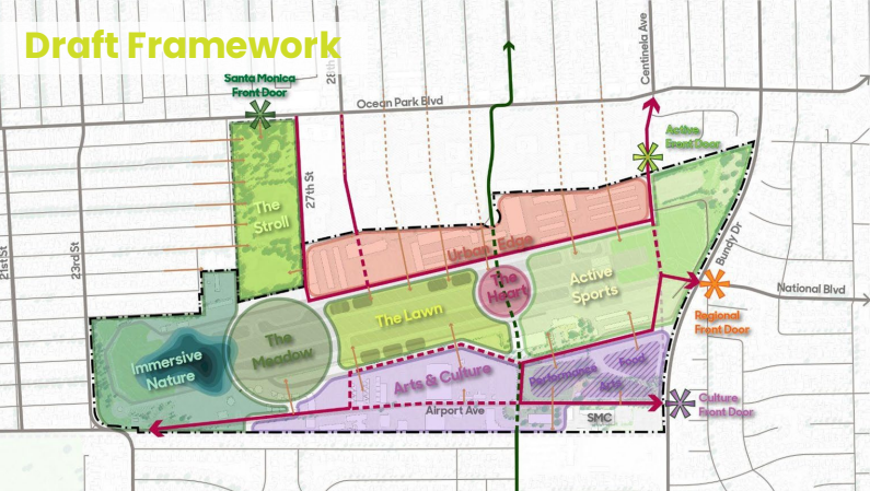 Planning for the future of the Santa Monica Airport site has moved into a new phase, with city officials releasing a draft framework outlining potential uses and design concepts for the property.