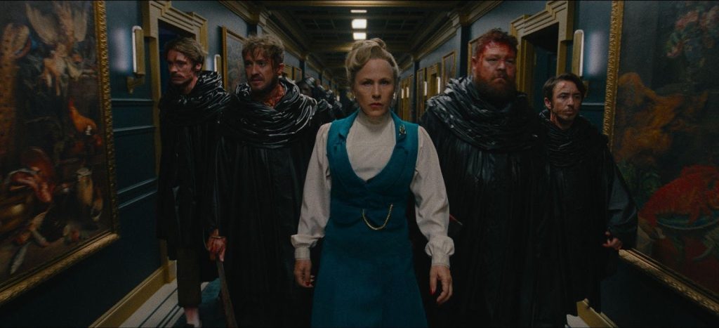 OK, this movie is like a glass of fine red wine – blood red wine thrown on you right through the screen, with notes of The Addams Family, The Evil Dead, Wednesday, and Liam Neeson in revenge mode. There is no deep thinking involved in the story, the setting, or the characters. The carefully mounted and symmetrical sets are reminiscent of a Wes Anderson movie – if it were directed by a biker gang or a psychedelic cult.