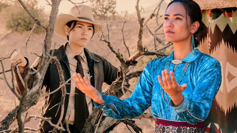‘“DARK WINDS” – Why am I recommending this (highly recommending, actually) when this is the season finale? Because you can find the whole season on the AMC+ app. I think the previous three seasons are available on Netflix. So take a weekend and do yourself a favor and binge. There has never been anything like this, an accurate portrayal of the Native American culture, specifically the Navajo of NM and AZ, in a mystery series so incredibly well written and acted. Nearly everyone involved is Diné, but not out of any condescension. This is one of the finest acting ensembles I have ever seen, and I don’t understand how this was passed by for awards consideration. Based on the very popular series of murder mysteries by Tony Hillerman, set on the Navajo Reservation, his daughter Anne took up the mantle after he died and added a female police officer, and Anne’s novels have all hit the NY Times bestseller lists. Four years ago, Robert Redford and George R.R. Martin began producing shows that combined some novels by both Hillermans, and the results have been spectacular. Stunning NM scenery, great stories integrating Native American spiritual beliefs (sometimes metaphysically scary), superb soundtrack, and a phenomenal cast. The fourth season started this past Sunday on AMC and also airs on AMC+. That photo may look like a beautiful young woman doing meditation outdoors, but that is Bernadette, the new character, also seen in her uniform, and this kind of shows how they are in two worlds. The Navajo world is shown so accurately that it is sometimes confusing to we gringos, but that marks for a better mystery story. Sunday 9 p.m., AMC, AMC+.