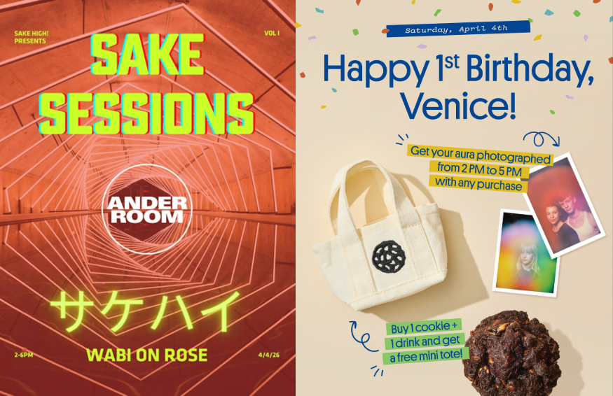 Just blocks away, Levain Venice will mark its first anniversary with a series of interactive promotions for customers. From 2 p.m. to 5 p.m., the bakery will offer complimentary aura photography with any purchase. Yes, get a photo of your aura and a special tote bag while snacking on cookies and having a refreshing coffee. Too much fun.